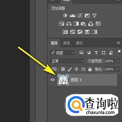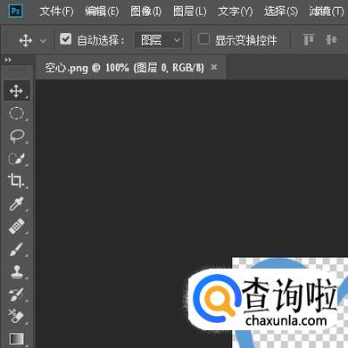 再放开鼠标,即可自动生成一个空心图片的文档。自动生成图层0;空心图显示在画布中。
