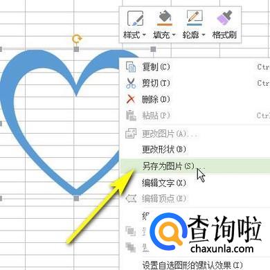 鼠标右击形状,弹出右键菜单,再点:另存为图片。