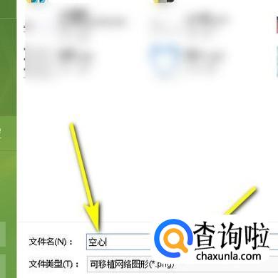 然后,在界面的下面这里,设置图片文件名称;我修改名称为:空心;而文件类型默认是PNG格式的。如图所示。