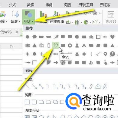 接着,再点“形状”下拉按钮,在弹出的面板中,选择自己中意的形状。比如,空心