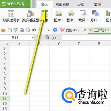 首先,启动WPS表格软件,新建一个工作表。再点击“插入”选项卡。