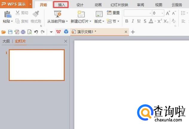 首先,我们打开我们的电脑,然后我们打开我们电脑上面的wps演示,之后我们点击工具栏中的插入;