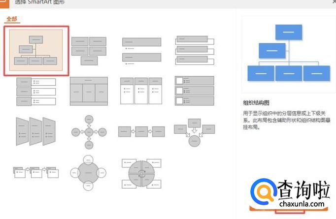 之后我们点击选中组织结构图,之后我们点击确定;