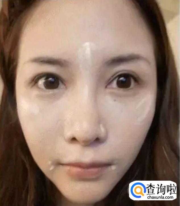 挤出黄豆般大小的ve面霜,分别在脸颊两边、两边太阳穴处、鼻尖处、下巴处,更点一点面霜。