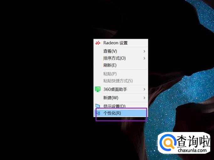首先,我们在电脑的桌面上进行右击,选择个性化;