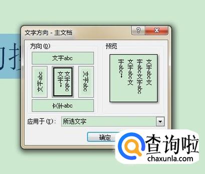 接着选择我们要的文字方向并点击确定,如下图所示。