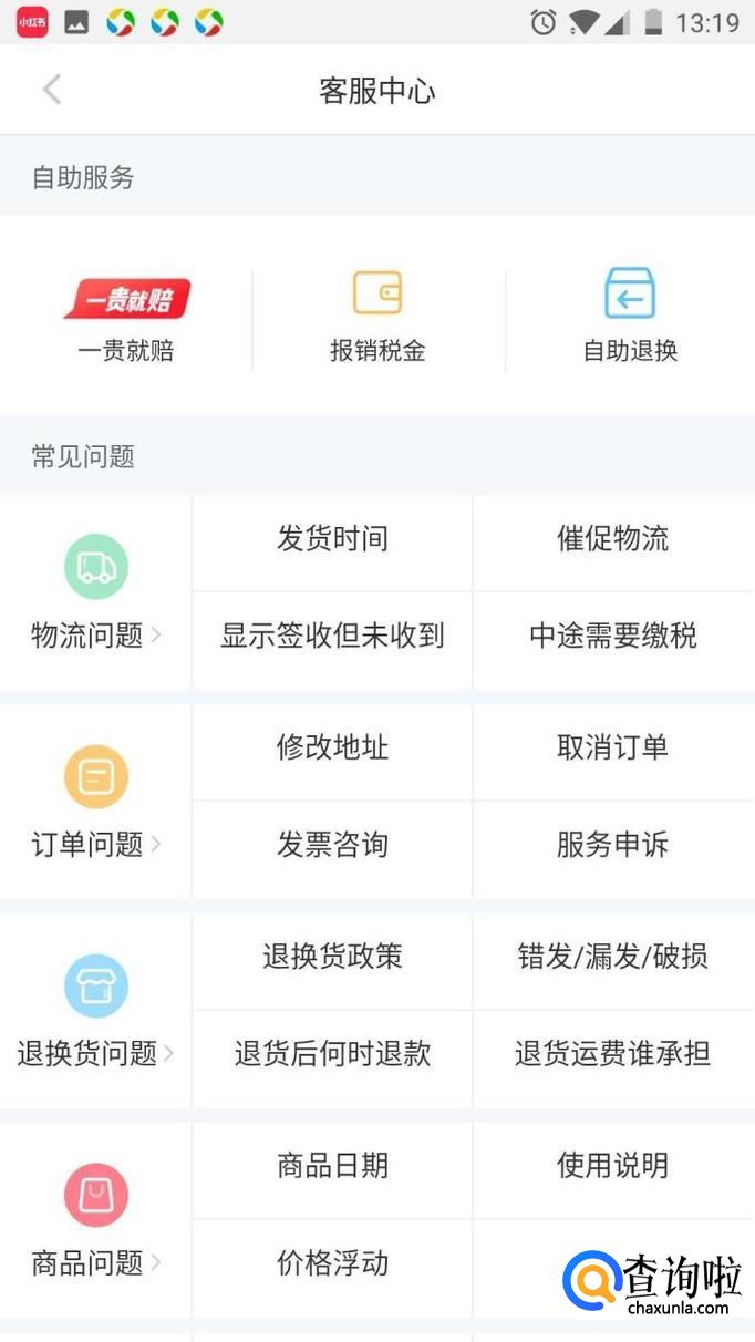 点击“客服中心”,可以看到里面有许多购买订单时遇到的问题,选择你需要的那一个,如果没有你的选项,点击其中一个进入