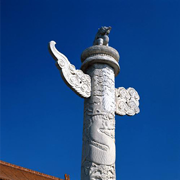 华表的柱头上也有瑞兽,名字叫“犼”。古人创造出很多瑞兽,它们的功能各不相同,但大多寄托着人们祈福避祸的愿望。“犼”是一种形似犬的瑞兽,根据所在方位的不同,表达的意义也不相同。
