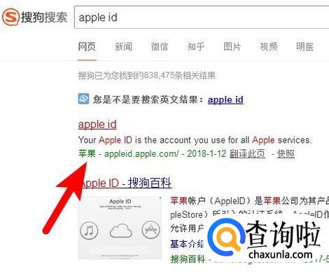 搜狗搜索 Apple ID 进入官网 ,如图