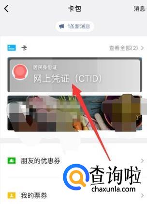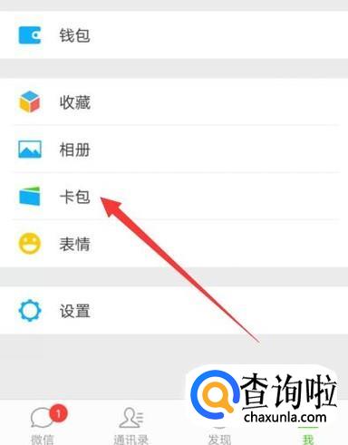 在“我”页面,点击“卡包”,进入下一页面,如图所示。