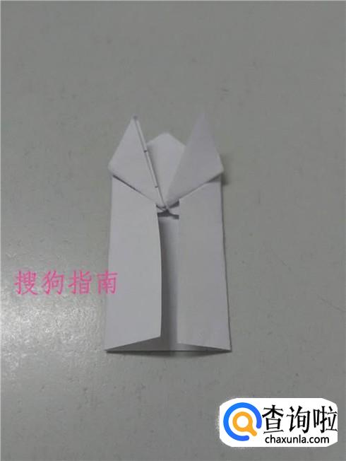 把左右两个小角向上折,折成青蛙的两条前腿。