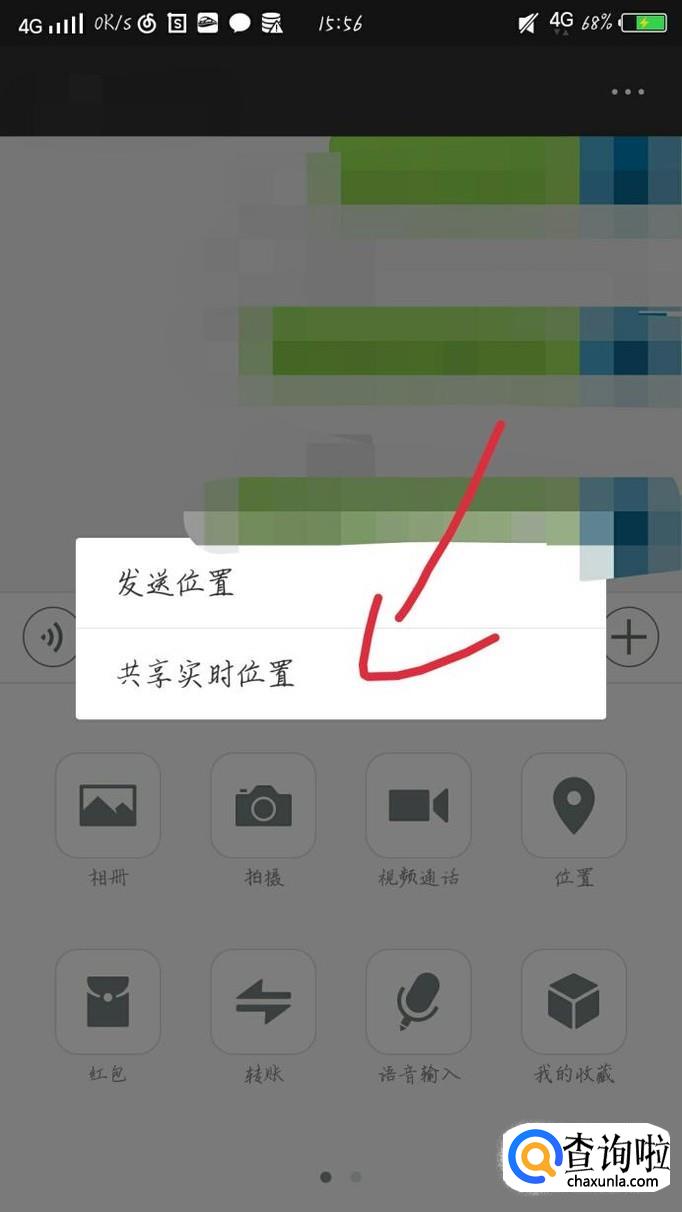 会出现一个新的界面,如图1所示。点击“位置”选项,如图2所示。点击“共享实时位置”选项,如图3箭头所示。在对方也接受后,你就可以看到对方在哪里了。