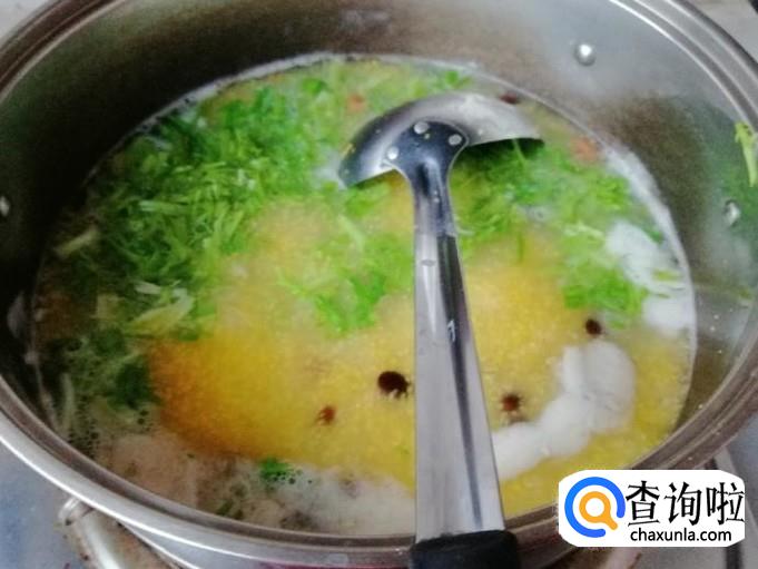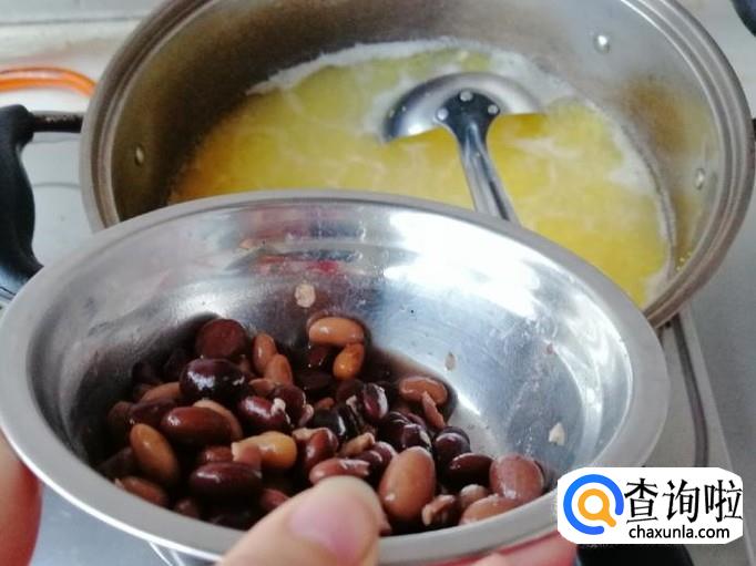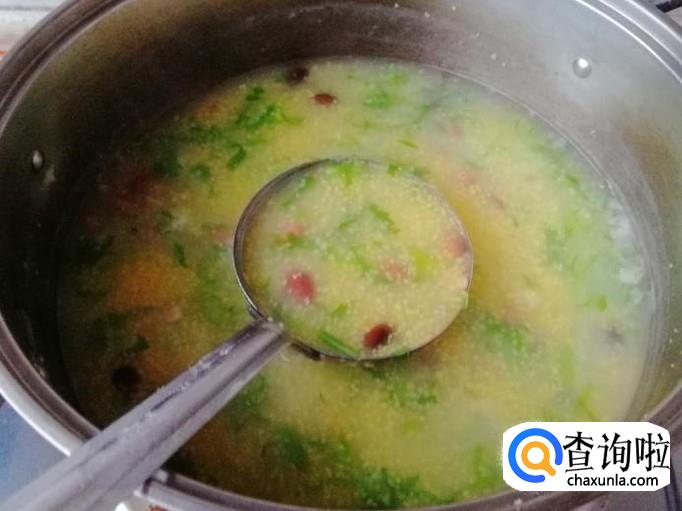 苦菊豆子玉米渣粥的做法