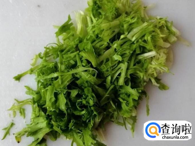 取适量新鲜的苦菊,把苦菊摘掉老根和黄叶,选用外面的老叶子,用清水把苦菊叶子洗净切好待用。
