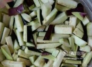 将茄子洗净后切掉尾部的部分,然后切成小条备用,老茄子可以刮一下皮,嫩茄子就不用了。