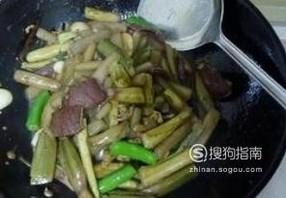 大约炒五分钟左右,芋头花茎干和茄子就全熟了,这时候放一点辣椒油、蒜片和适量盐,翻炒均匀就可以出锅了!
