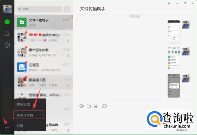 微信上有个【备份与恢复】功能,需要在PC端登录微信,在右下角便可看到【备份与恢复】。