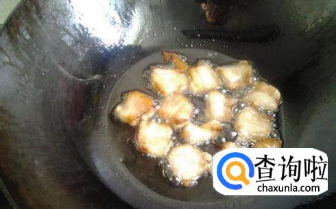 锅中不要放油,直接把肥肉放入锅中进行炒制,炒至表面焦黄即可