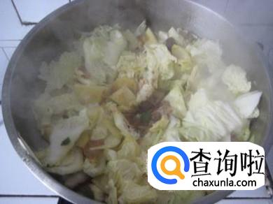 最后把煮好的白菜肥肉盛出,尝一口,好吃不腻