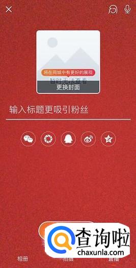 如果想要直播的话,点击下面的直播,传上封面、加上标题,才可以直播。