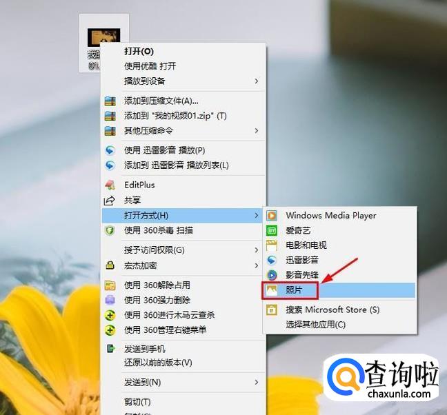 下载安装以后,我们找到那段带有爱剪辑片头片尾的短视频,点击鼠标右键选择"打开方式"为"照片",这个时候我们可以预览视频,从下图也可以看出这段带有爱剪辑三个字的片头