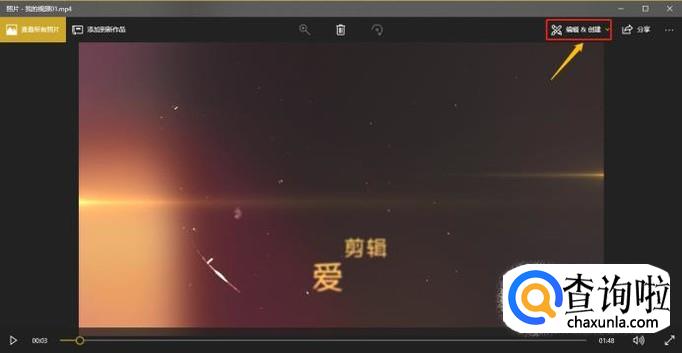 然后我们在播放界面的右上角点击"编辑&创建"-"剪裁",如下图;