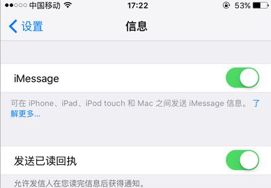 开通iMessage服务后,接着进入短信界面,输入短信内容,如果对方也开通了iMessage,此时手机自动转化成iMessage方式发送,内容会以蓝色标记显示。