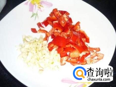 然后取适量的红辣椒,大蒜,洗净后然后剁成末备用