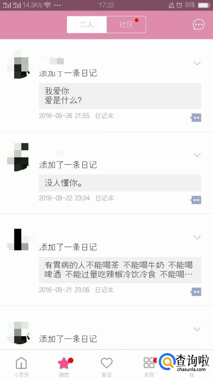 在小恩爱动态页面中,二人区域就是属于二人的一些动态情况,在社区中可以看到一些使用小恩爱的用户发布的一些动态情况。