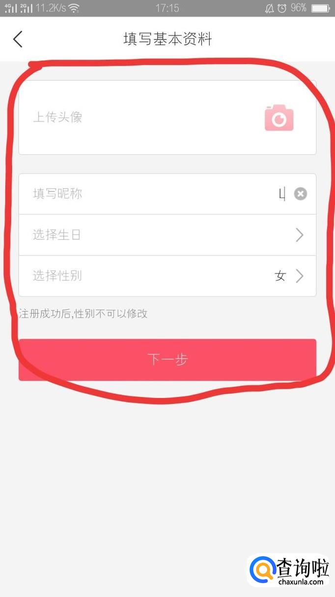 点击使用QQ登陆之后,在填写基本资料页面中,填写你的一些基本情况信息,填写完成之后点击“下一步”。