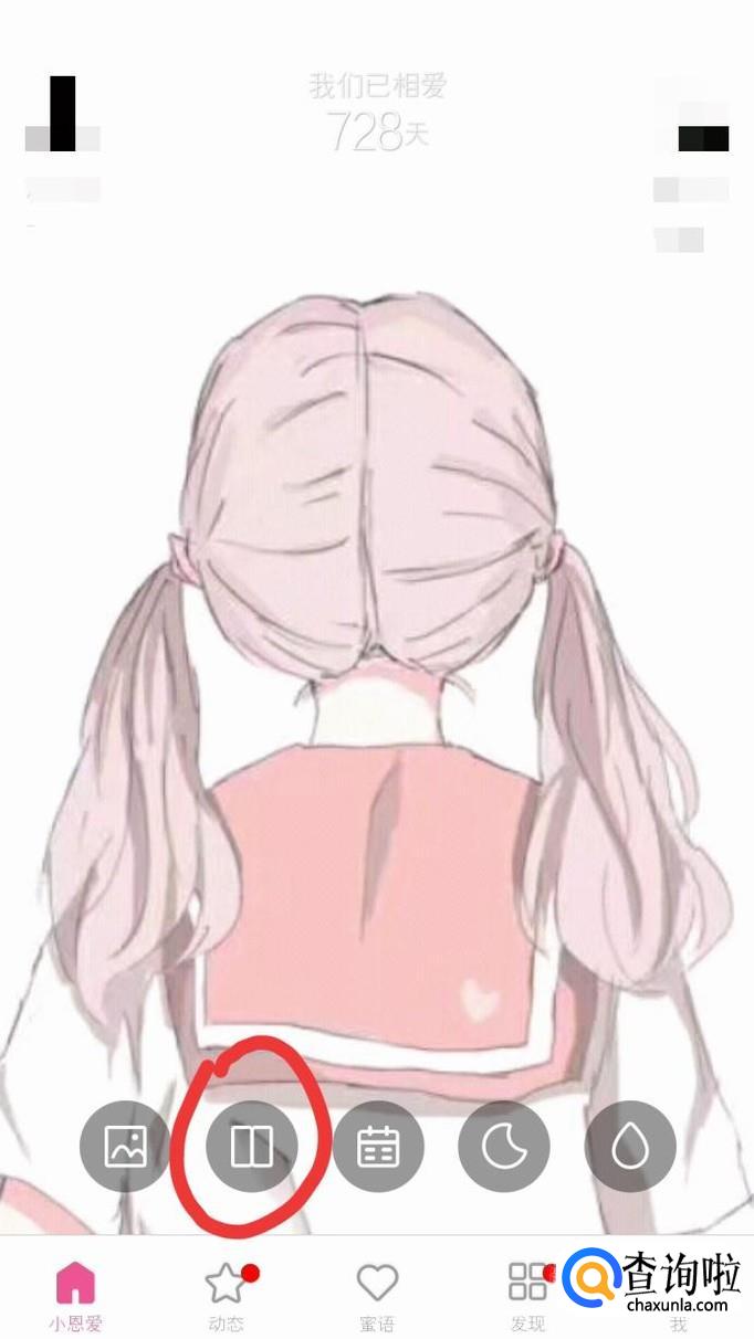 登陆你的小恩爱账号,然后在小恩爱首页面可以看到两个人已经相爱的时间,点击第一个图片样式,进入下一个操作页面。