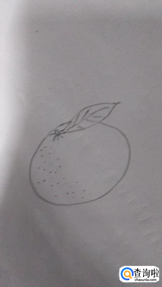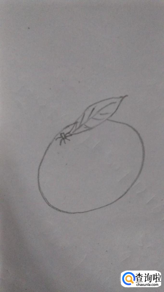 然后画上一片两片叶子,这样一个橘子的形状就基本完成了。