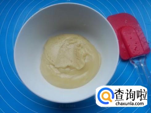 取一个干净的碗,倒入少量面粉。锅中倒入一些植物油,油沸腾后,将油倒入面粉中,再打入一个鸡蛋,然后快速搅拌,搅拌好后就成了油酥。