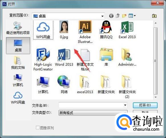 打开ps我们双击空白的区域,然后在弹出的对话框内找到我们的图片,如图所示: