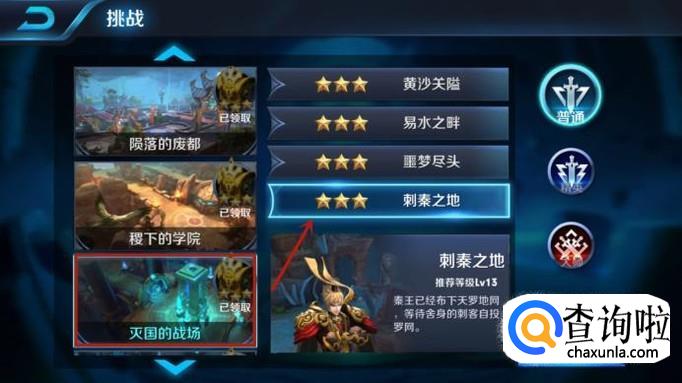 然后选择灭国的战场当中的刺秦之地,如下图所示。