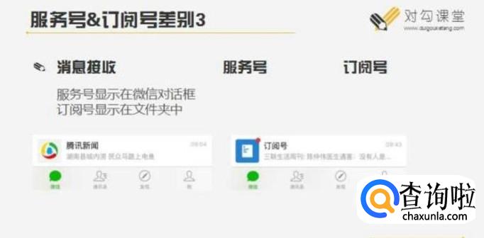 服务号为用户提供服务的,一个月只能发送4次群发消息,而且消息可以显示在用户的聊天记录里面,相对来说比较受限制。