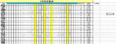 在算出勤率的时候,还应该把出勤率细化到每一个个人,做Excel表如下图所示,标注清楚她的上班情况。