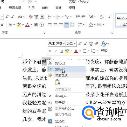 把“瓢泼”选中。鼠标再右击,弹出菜单再点:复制