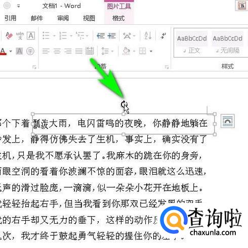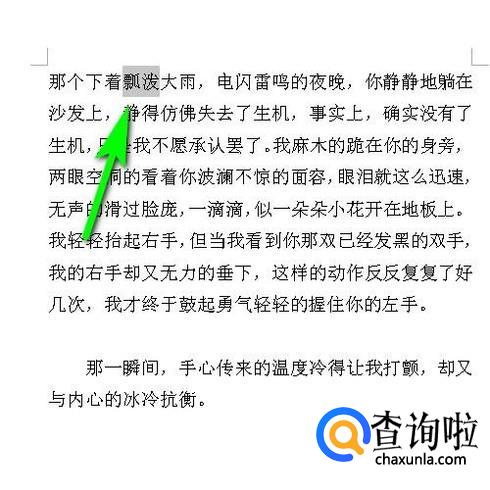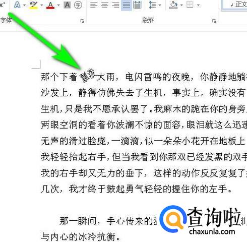 打开文本,假设,要把文档中的文字“瓢泼”旋转45度。