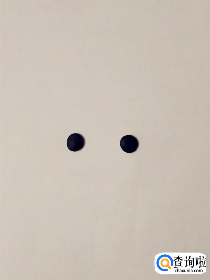 用白色团四个小球,两只眼睛各粘两个小白球,当作眼里的光。