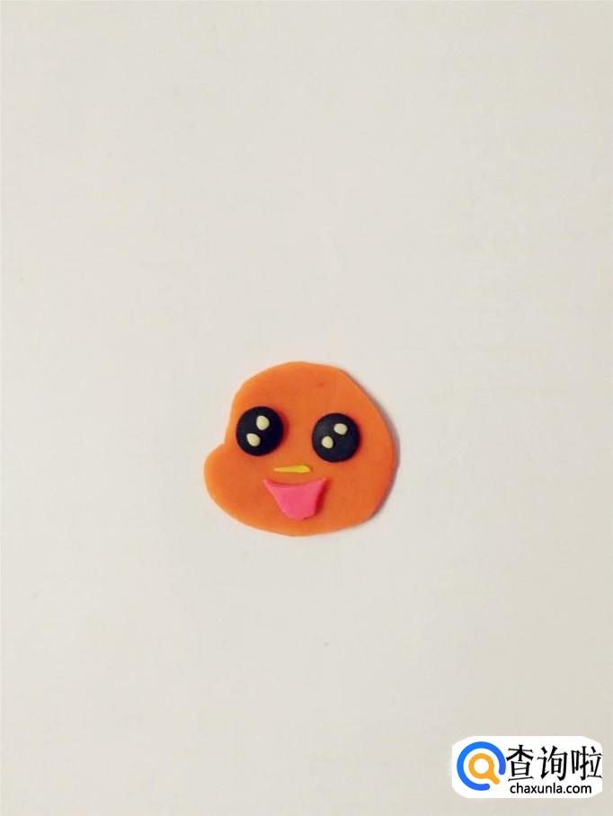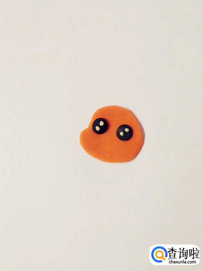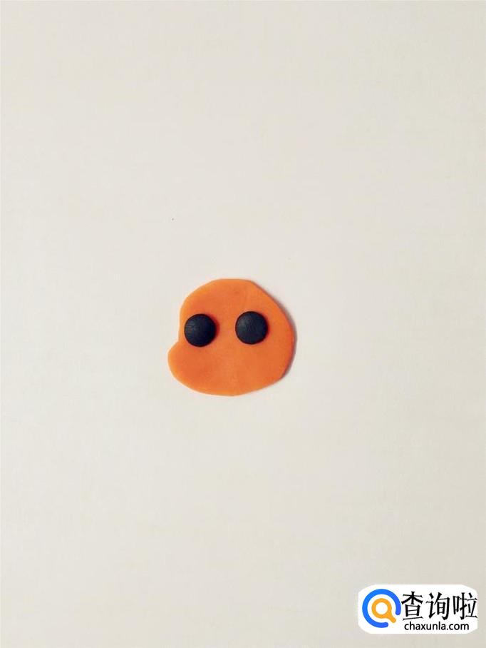 用黄色搓一个又细又短的条,粘在眼睛下面,当作鼻子。