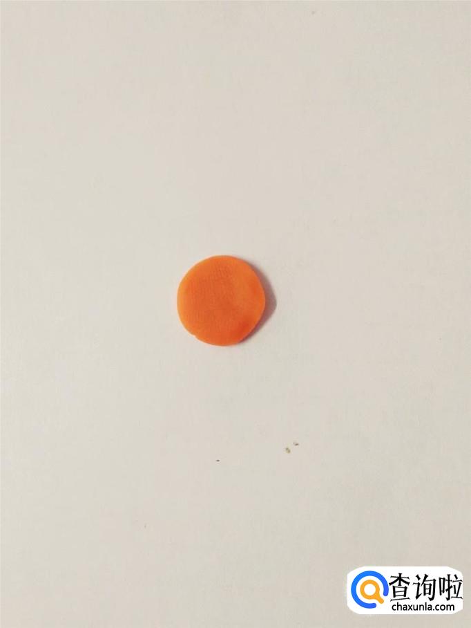 再用一块桔色捏成窄窄的椭圆形,粘在圆形下面,当作连接胸和肚子的关节。
