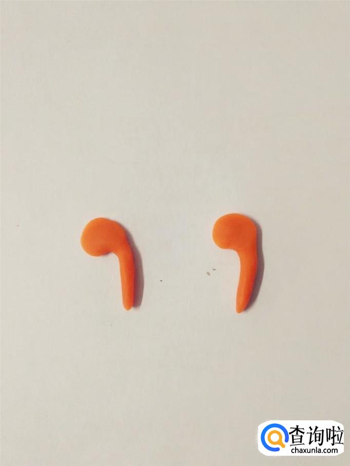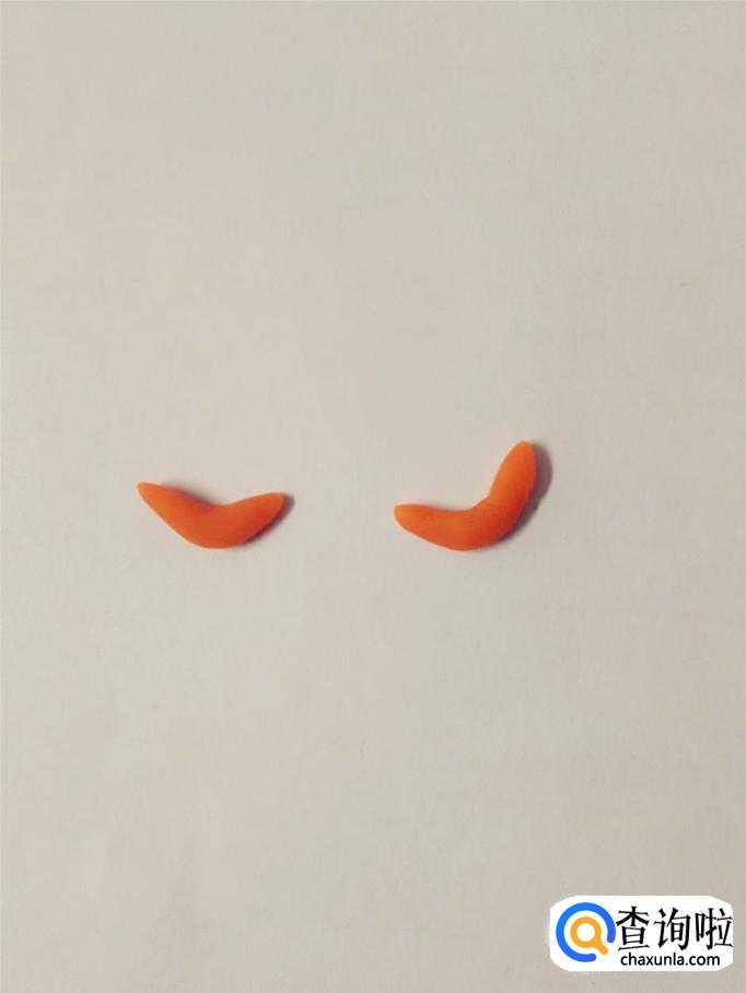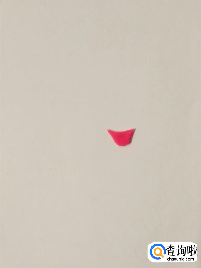 用粉色捏一个半圆形,把半圆形的两边往上捏出尖来,当作嘴巴。
