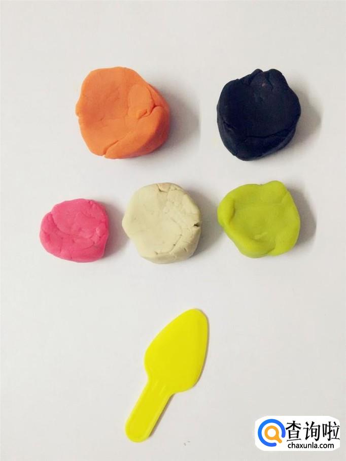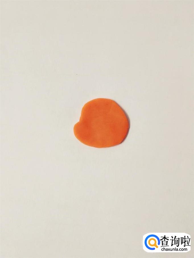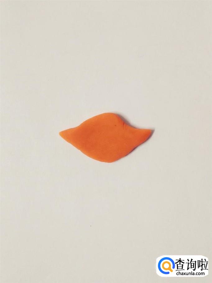 再用一大块桔色,捏成嘴唇的形状,粘在椭圆关节的下面,当作肚子部分。