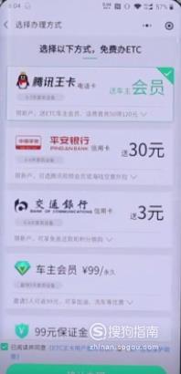 这里选择办理方式,可以选择银行等,我们这里选择【99元保证金】。