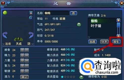 需要将一只灵兽丢弃时,点击右上边的放生,确认后即可丢弃。