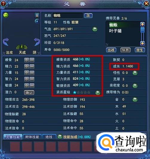 灵兽的资质星级越高,灵兽的资质越高,资质可以影响灵兽的各项属性;