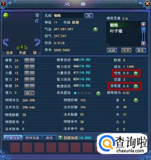 灵兽悟性和亲密度可以使用道具提升,最高升至10,亲密度不可大于悟性!