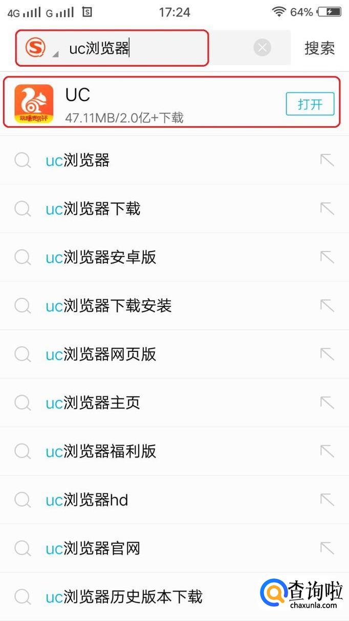 首先,需要在手机上下载“UC浏览器”,可以用搜索的方式找到并下载安装。