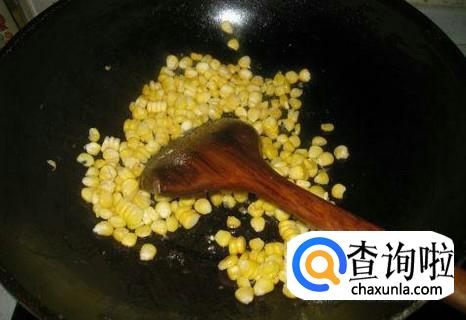 也可以加入青豆,火腿同炒,做成彩色的玉米粒。